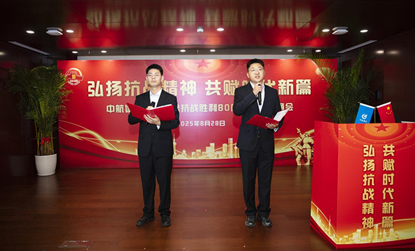 2025年8月28日,中航建设集团成功举办纪念中国人民抗日战争暨世界反法西斯战争胜利80周年诗歌朗诵活动。本次活动以“弘扬抗战精神,共赋时代新篇”为主题,通过线上线下相结合的方式,组织广大员工以诗歌朗诵的形式重温历史、缅怀先烈、传承精神、凝聚力量。集团公司总经理马晓进、党群领导邹文强等领导出席活动。机关各部门、各分(子)公司及项目部积极参与,副中心办公区人员现场参加,其他单位通过线上方式收看。